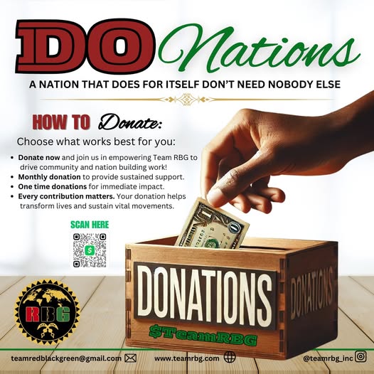 Team RBG was founded as an organization in 2024. The organization was established on the principle of Pan-Afrikanism. Pan-Afrikanism is an ideology that aims to encourage and strengthen bonds of solidarity historically and culturally between continental Afrikan people along with all people of Afrikan descent all over the world. As such, Team RBG seeks to contribute the creation of self reliant Black communities globally that live and work on the principle that live and work on the principle that Black people have the singular duty to empower themselves unto Global Afrikan Sovereignty.